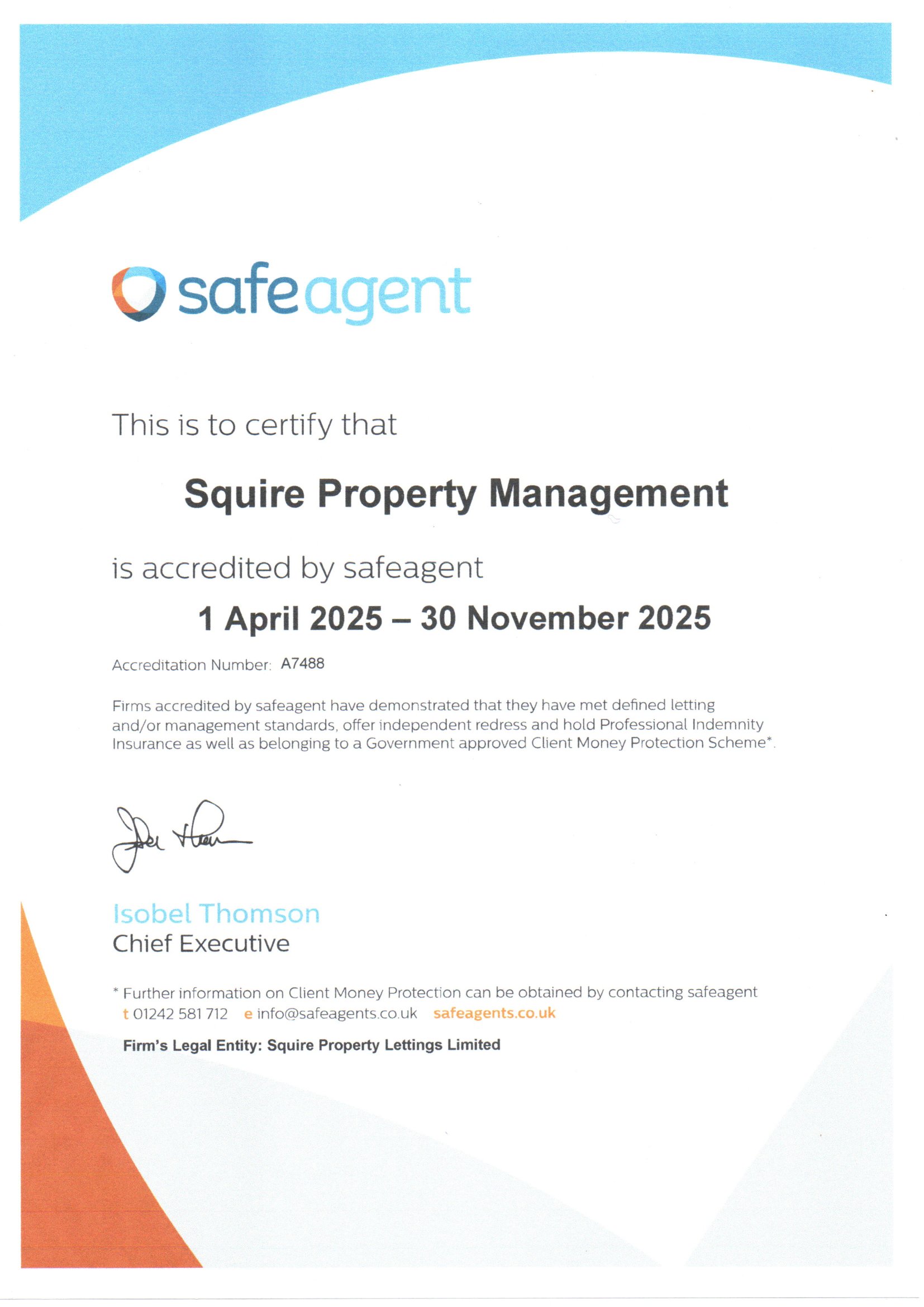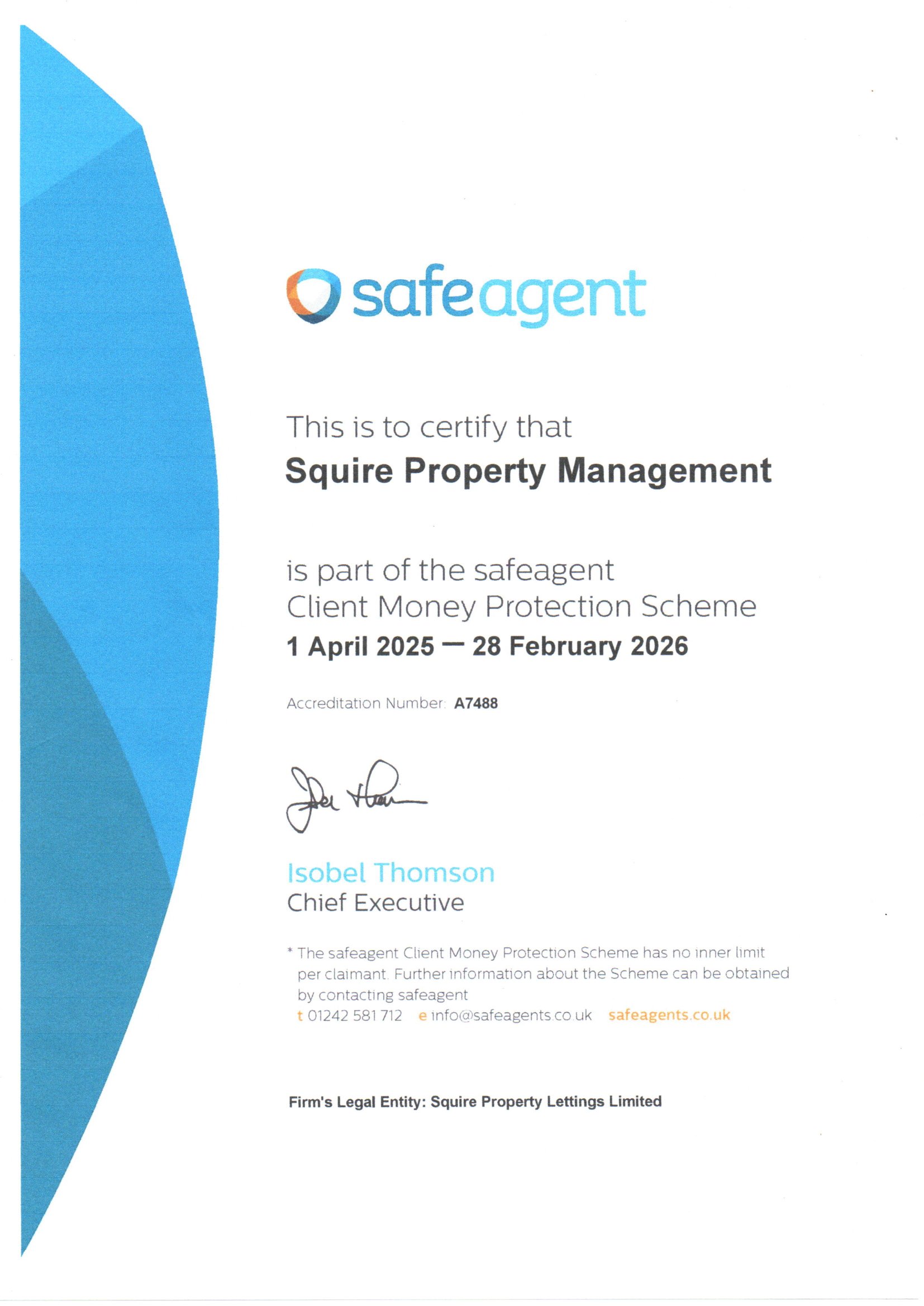 Squire Property Management are members of Safe Agent.  Membership number: A7488