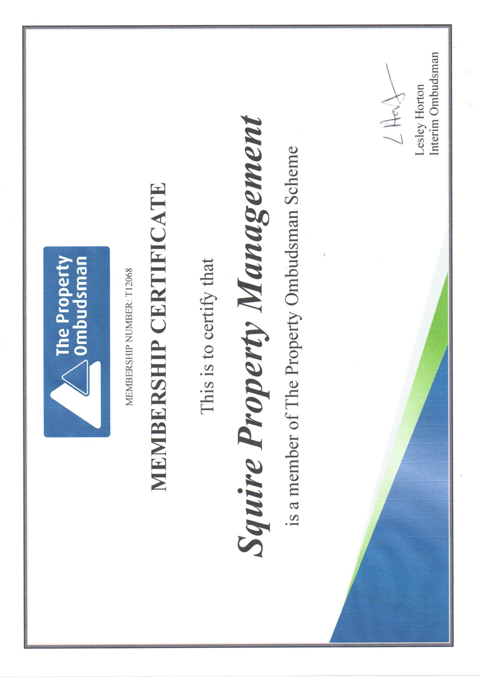 Squire Property Management are members of The Property Ombudsman (TPO).  Membership number: T12068